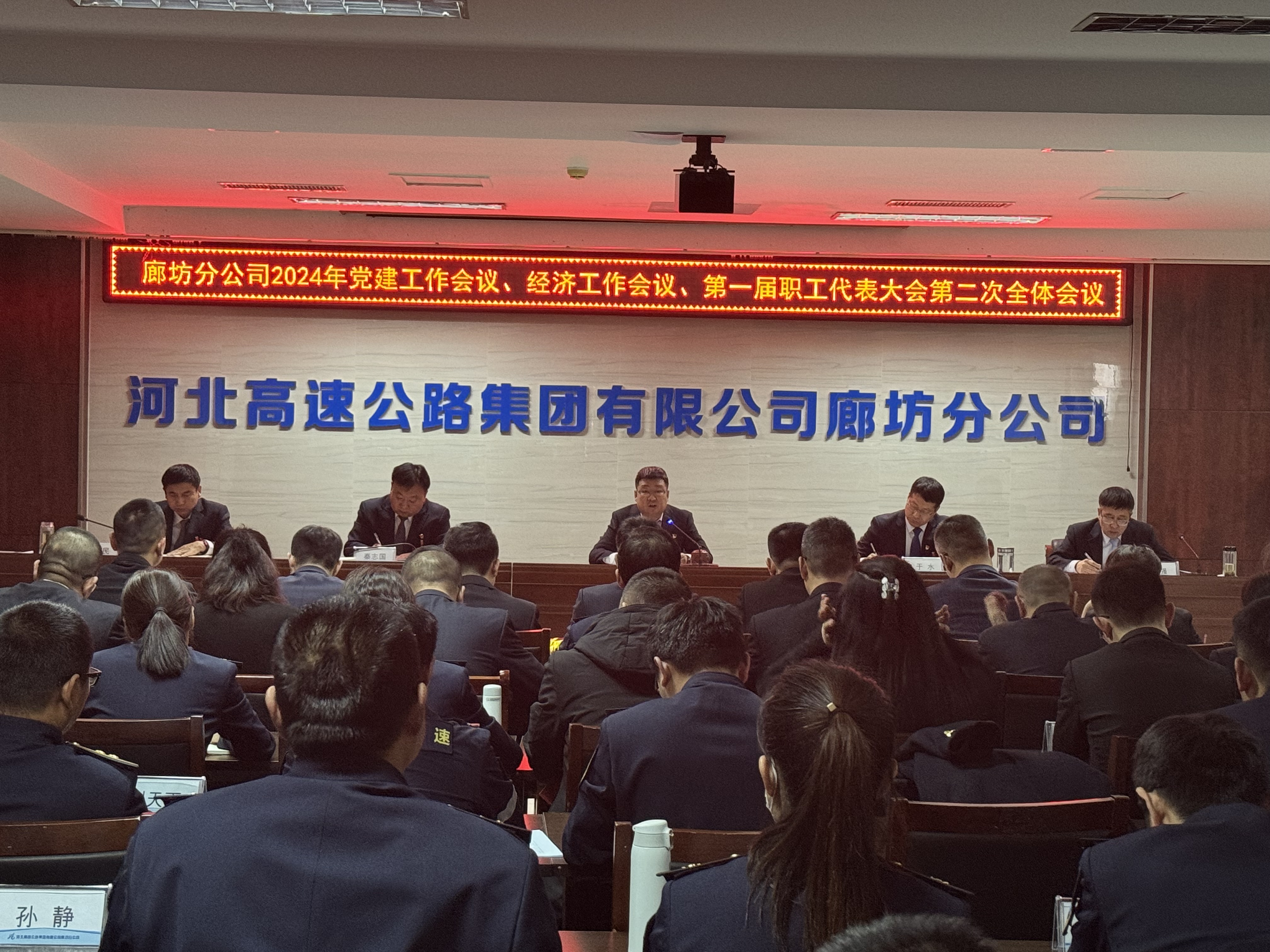 2024年1月16日,廊坊分公司召开2024年党建工作会议、经济工作会议、第一届职工代表大会第二次全体会议。分公司党委书记、副总经理智韶宇出席会议并讲话,领导班子成员出席会议,纪委书记张强主持会议。