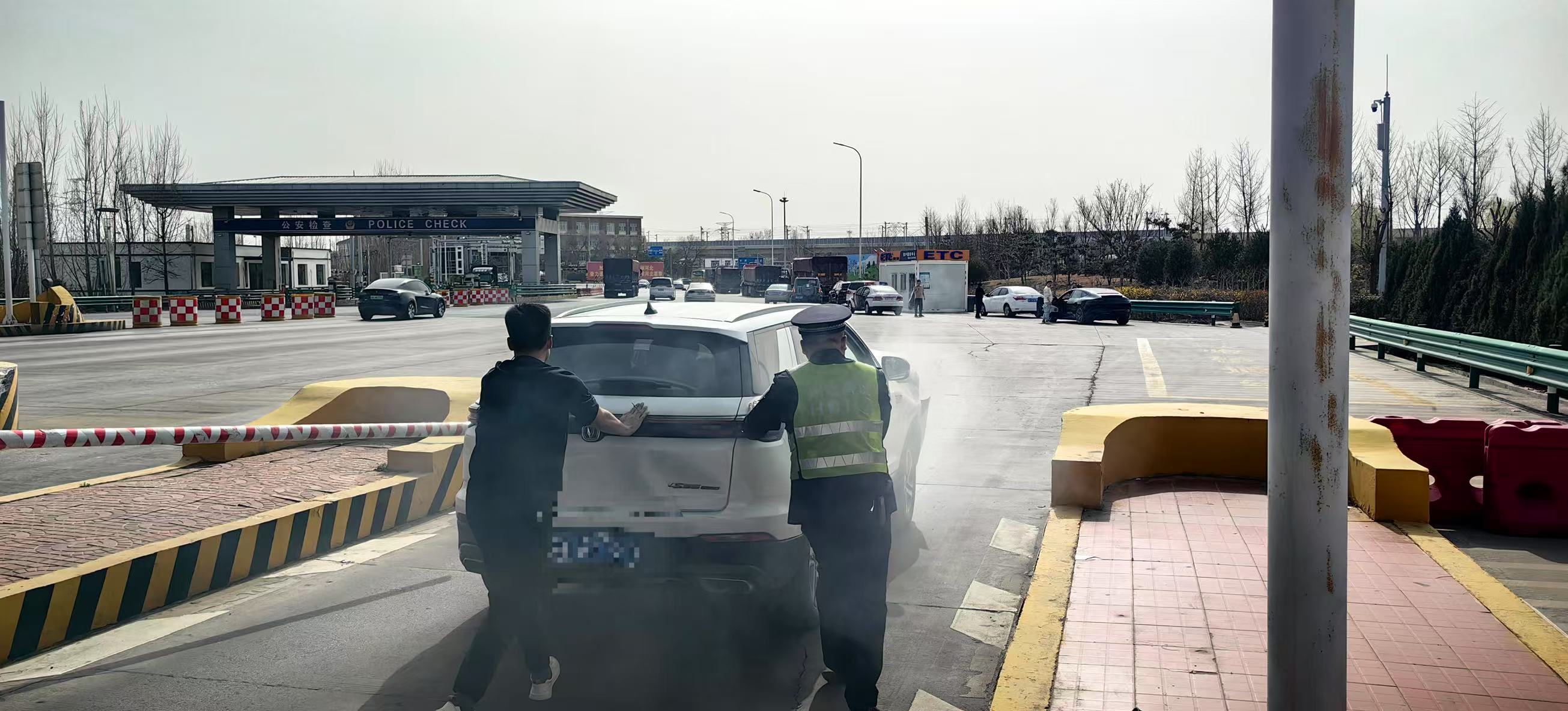 3月23日15时,一辆事故车驶入固安东收费站105车道,司机准备缴费时车辆受损部位忽然起火,当班收费员牛志民、张亚宁与在场的高速交警急忙取来灭火器灭火,正在治超岗亭值守的班长李月龙也迅速赶到车道,待明火熄灭后众人合力把车辆推至外广场安全地带,同时拨打119寻求支援,并安排专人疏导过往车辆。