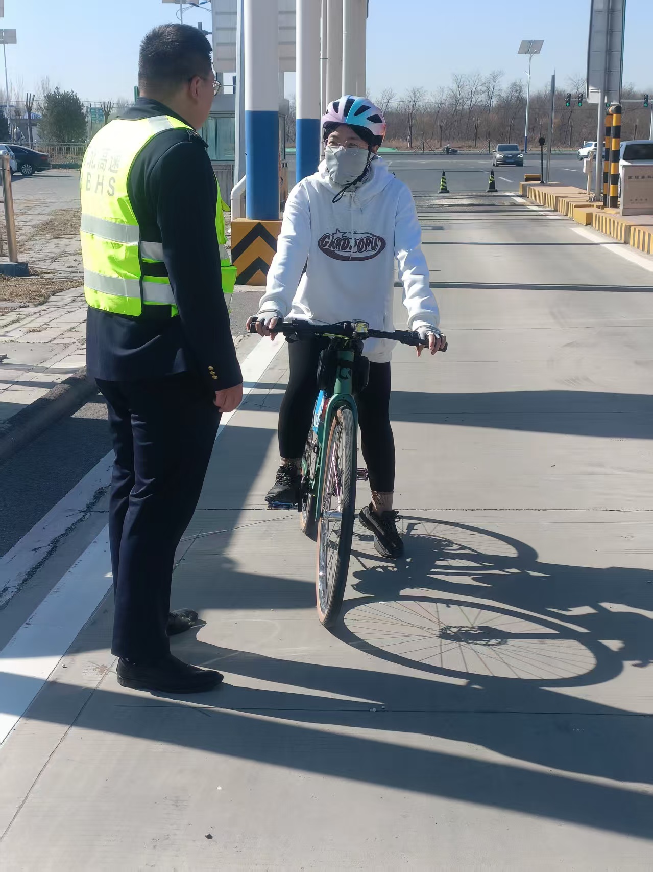 一个阳光明媚的下午,一位骑行的女士因手机没电了来到大厂东收费站寻求帮助。对于一位独自骑行者来说,手机不仅是通讯和导航工具,还能记录运动轨迹、打卡、听音乐。手机没电了非常影响骑行体验。这位女士说,发现手机没电时,她远远地看见了大厂东收费站,她相信那里一定有办法。
