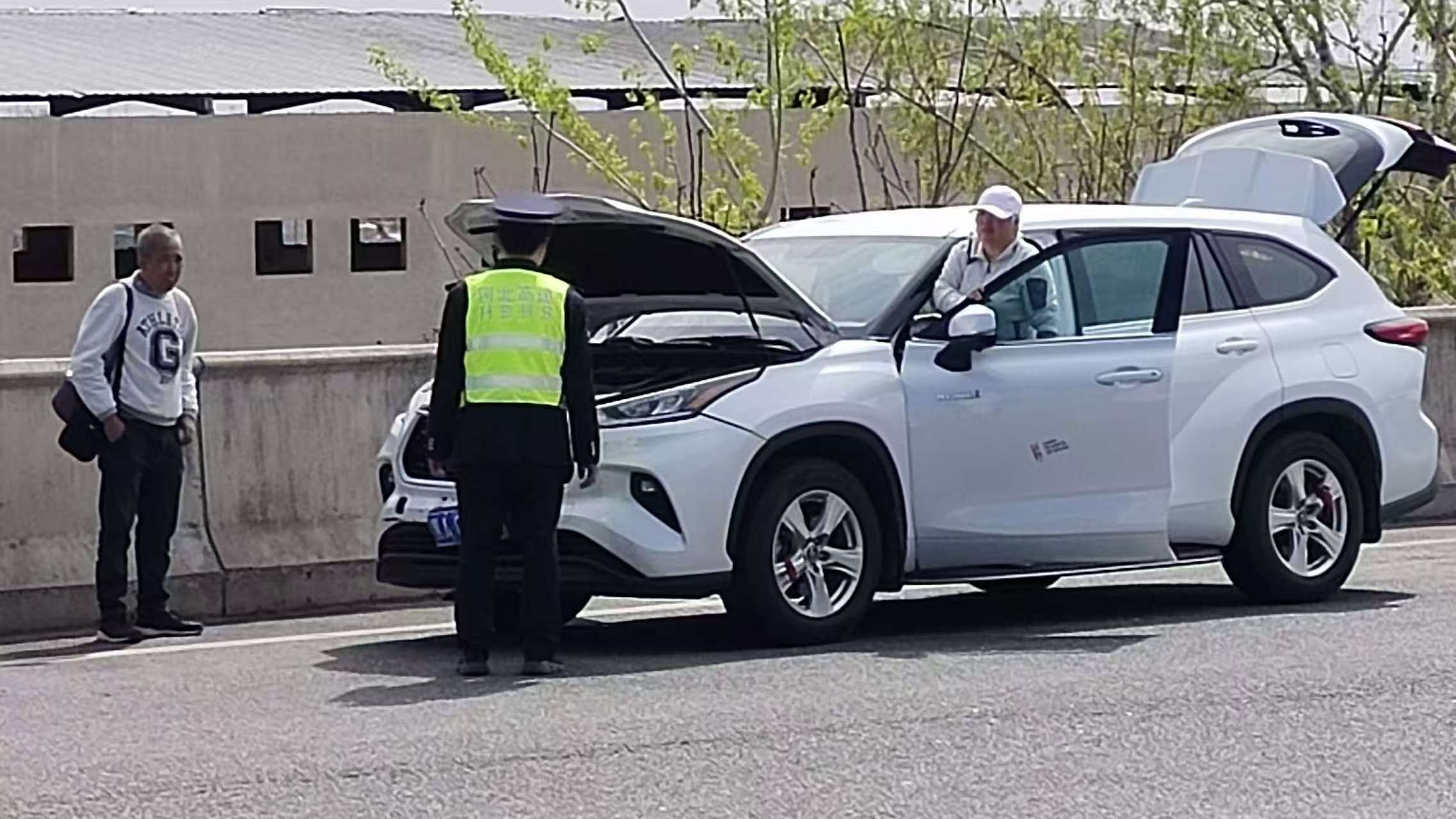 4月9日下午2点左右,蒋福山收费站出口广场处停了一辆白色小轿车,车上下来两位老人正在打开机箱盖不断查看。当班班长发现该情况后立即上前询问情况,得知该车在行驶途中出现故障提醒,不敢继续贸然行驶,所以就近下了高速。班长先是安慰老人不要着急,随后找来反光锥摆放在车后。经过简单查看后老人决定找来救援拖车将车辆托运到维修厂修理。在等待救援车过程中,班长请两位老人到便民服务室休息并帮老人打来热水。等了二十分钟左右,救援车赶来。两位老人对班长的服务表示肯定之后满意离开。