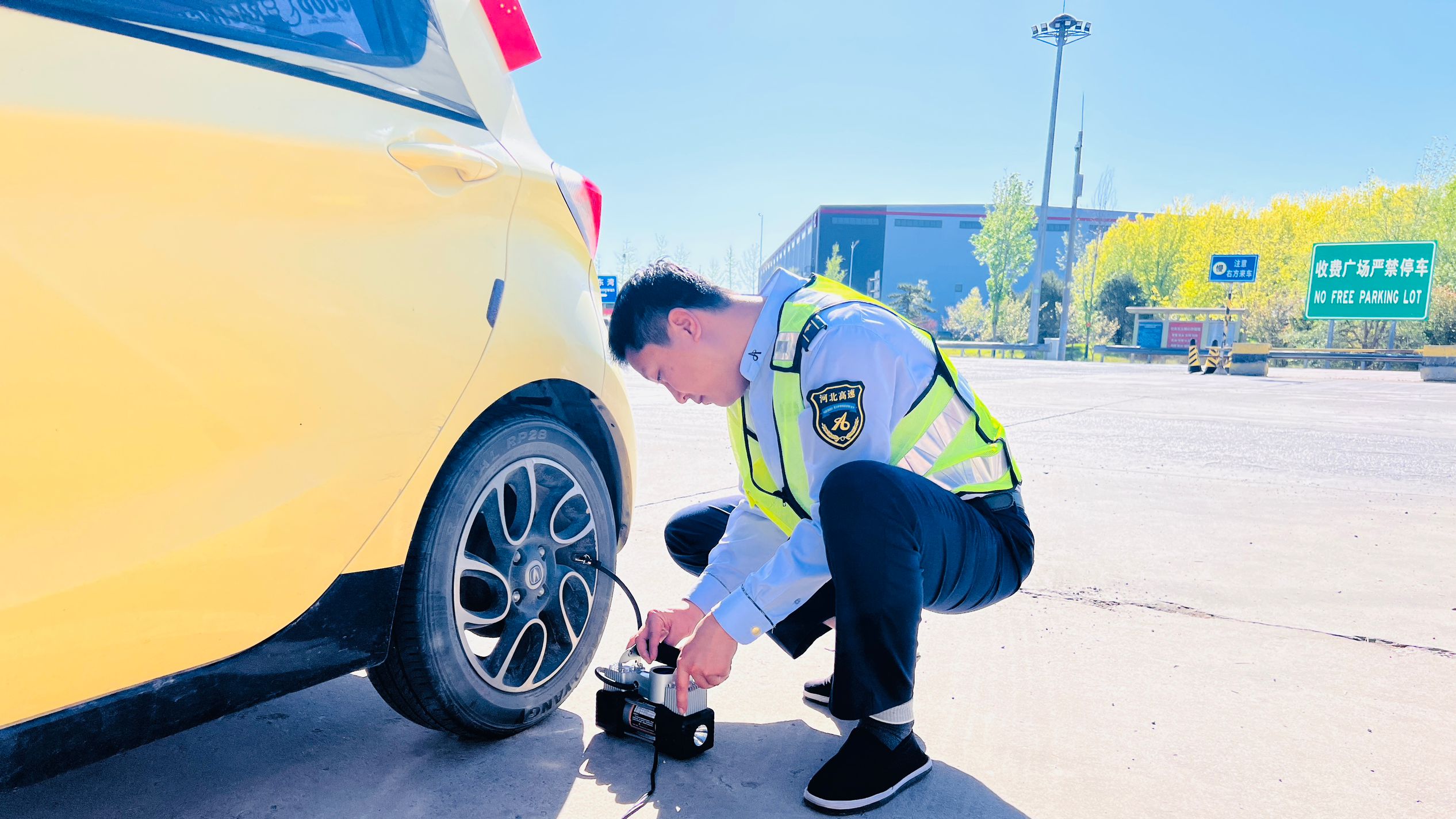 当日上午9时15分,一辆黄色小客车行驶至东湾收费站入口处时突然停下。当班班长迅速上前查看情况,发现该车因胎压报警系统提示而停靠。经初步询问并检查,确认车辆左后轮胎压低于标准值,且轮胎外观无明显扎钉或其他损伤。班长立即在车辆后方设置反光锥桶和警示牌,并使用站内配备的便携式充气设备对轮胎进行检测和充气。待轮胎充气至标准气压值后,班长向驾驶员详细说明了注意事项,并建议其尽快前往专业维修机构进行进一步检查。