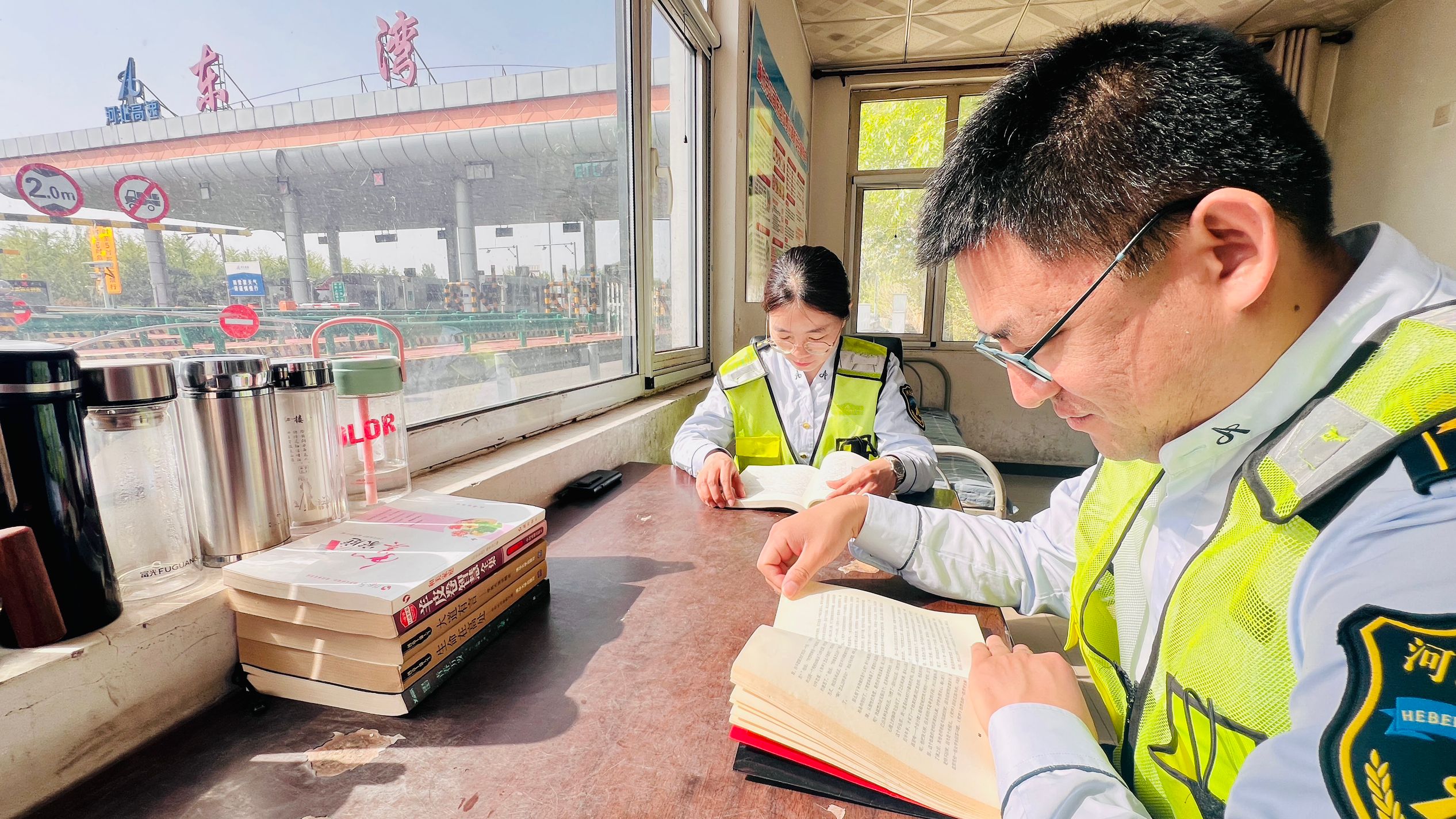 此刻,在东湾收费站繁忙的工作间隙,阅读为心灵开辟出一片宁静的天地。书香不仅浸润了岗亭,更让高速路上的服务增添了一份文化的温度。