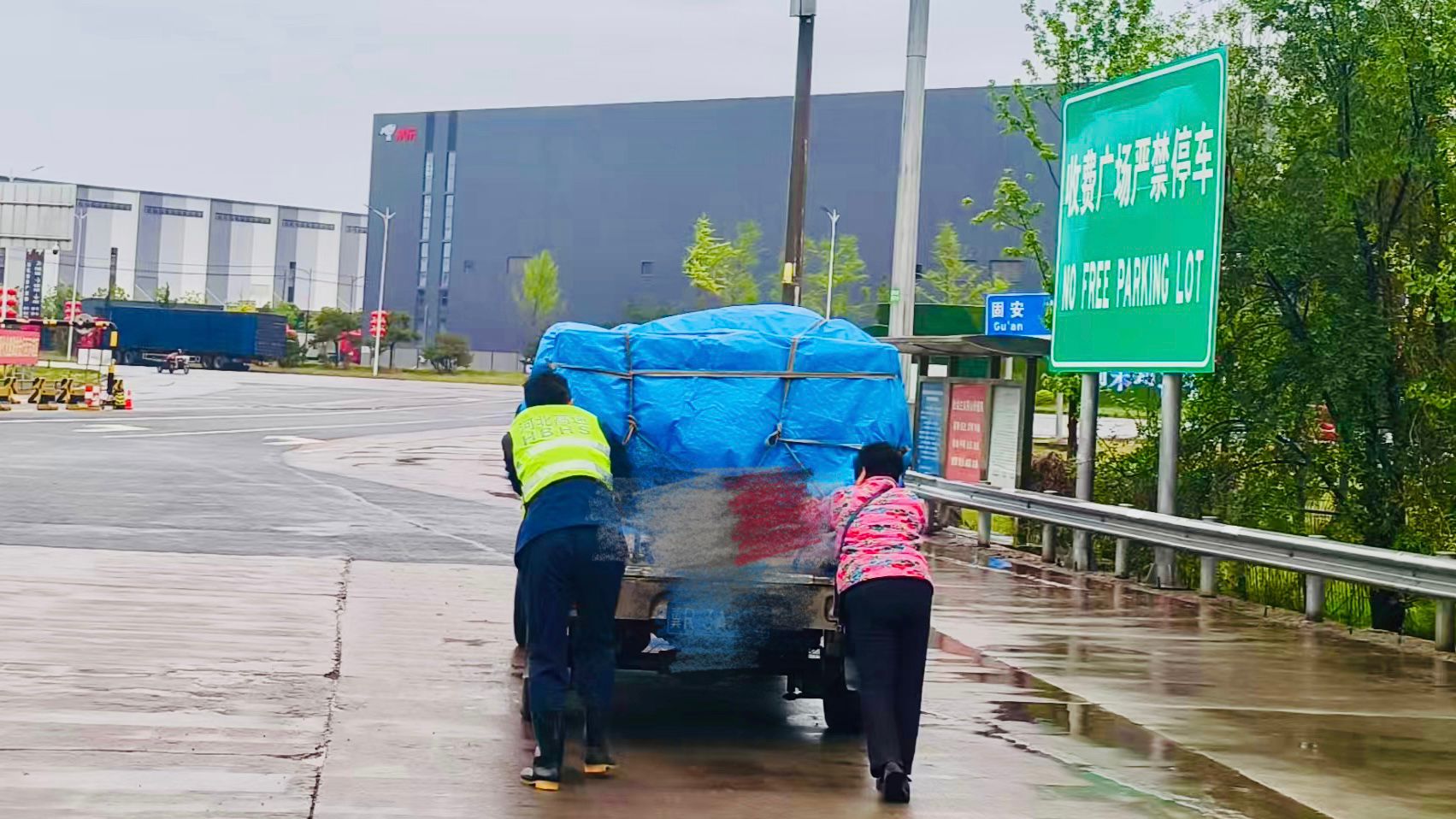 5月9日下午,天空阴沉,细雨如丝。一辆小货车在车道内突然停下,缴费完成后却久久未驶离,紧接着双闪警示灯亮起。工作人员上前询问,得知车辆突发故障熄火,司机多次尝试打火均无果,只能无奈停在车道上。