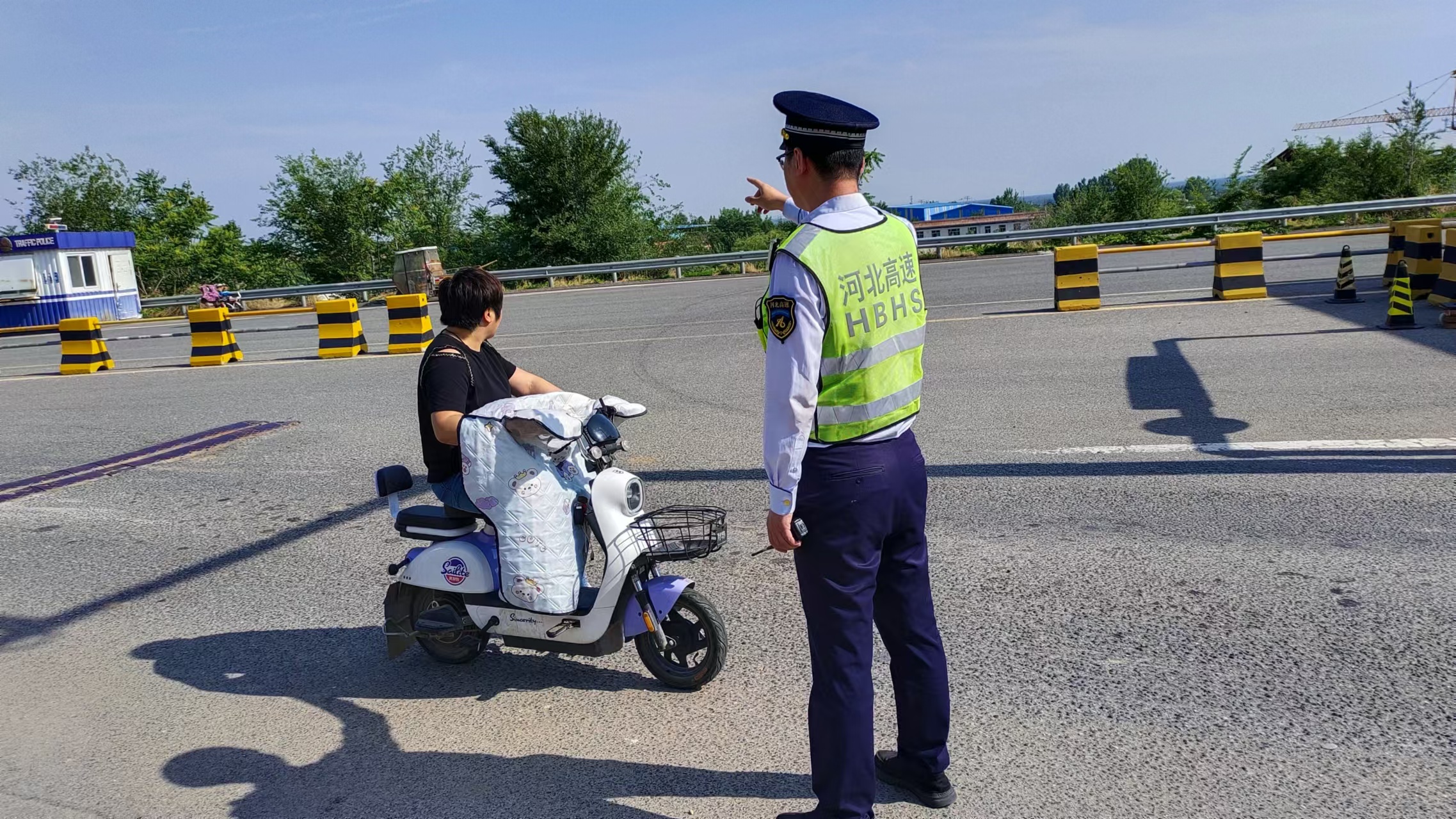 廊坊分公司蒋福山收费站:及时拦截误闯电动车 织密交通安全防护网