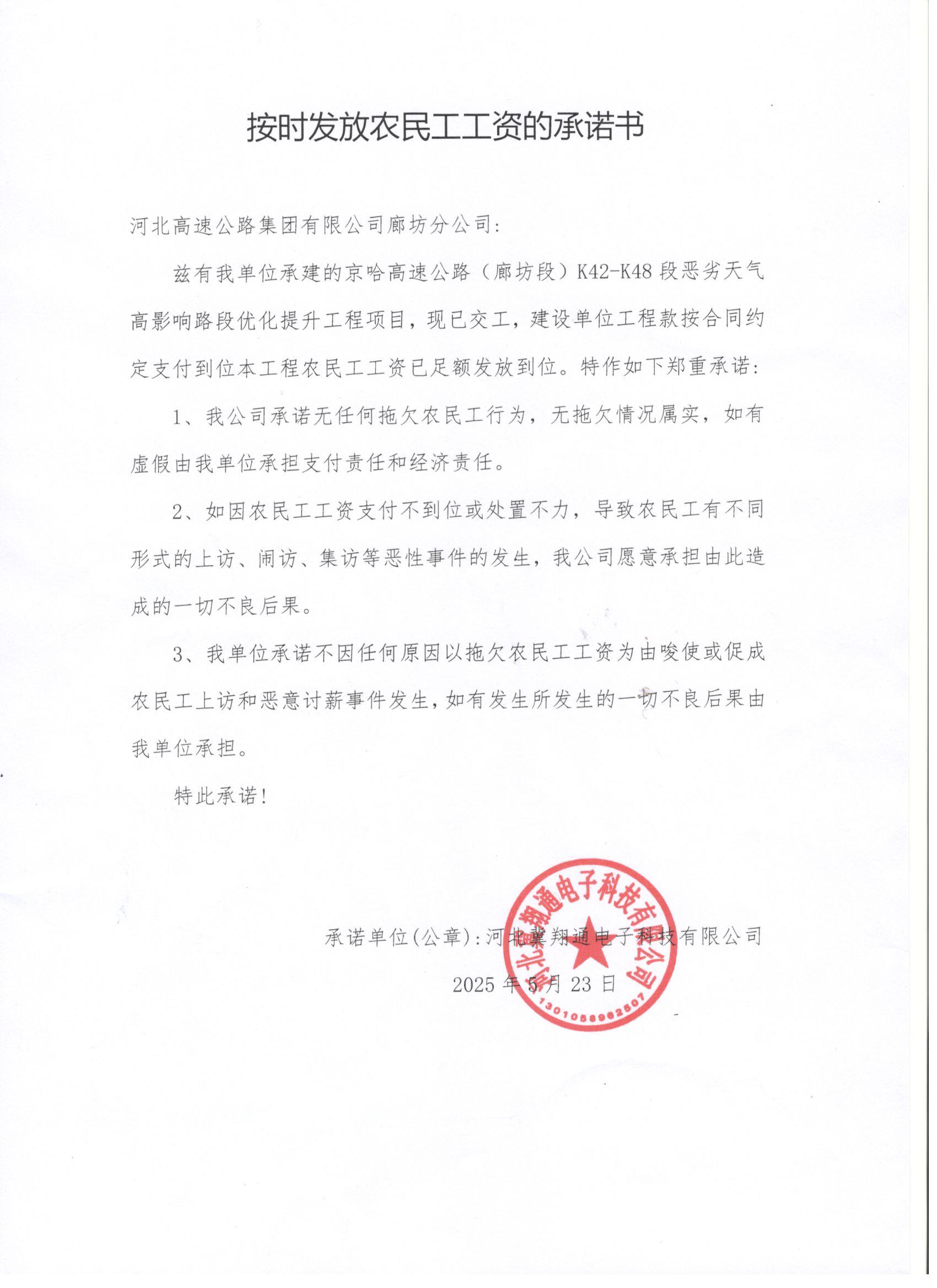 关于河北冀翔通电子科技有限公司农民工工资发放情况的公示