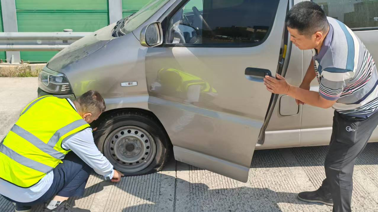 廊坊分公司燕郊西收费站暖心帮助换轮胎,为司机排忧解难