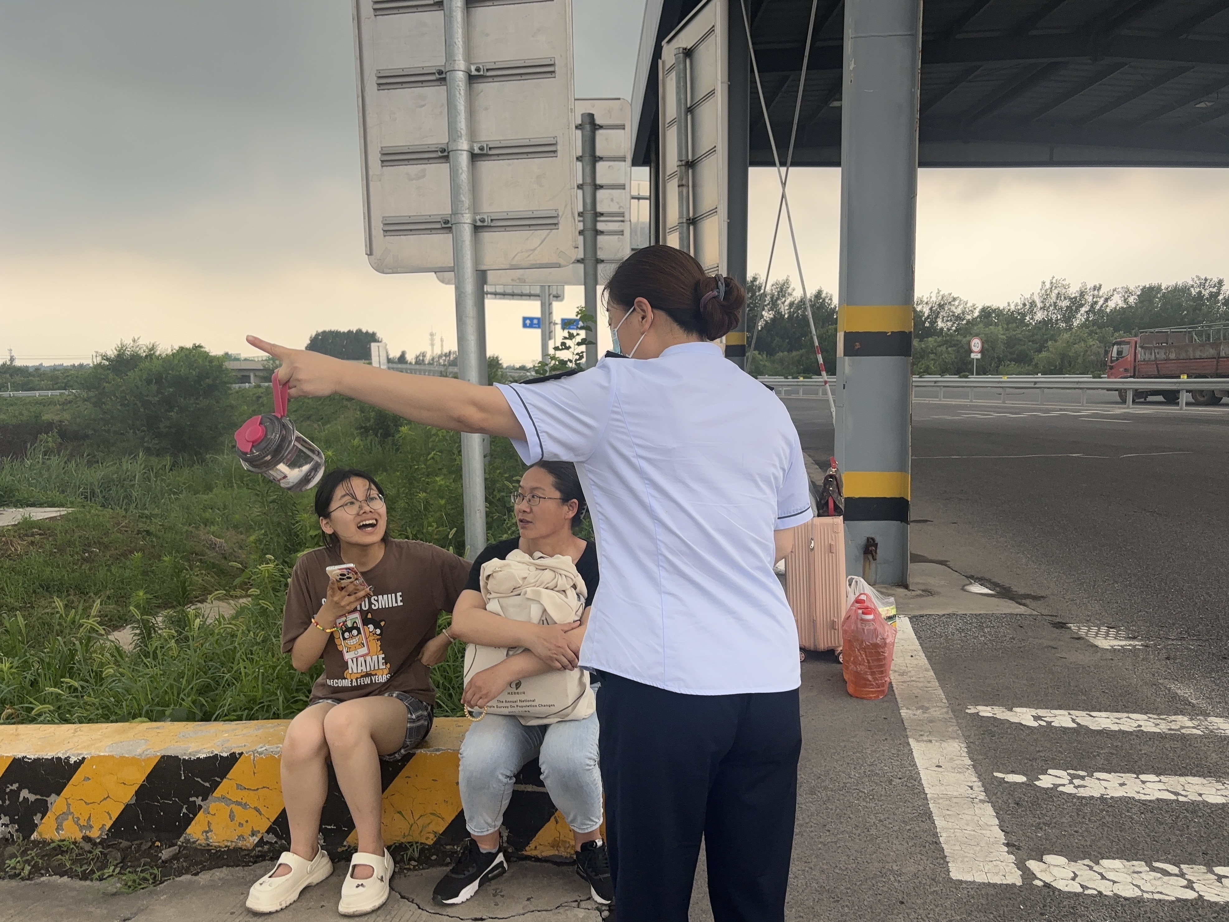 8月7日上午,正值高温酷热天气,有两位女子坐在收费站门口。当班备岗人员发现这一情况后,即刻上前主动询问。经了解,她们计划返乡,并与客车约定在收费站门口等候。然而,客车突发状况,将晚点2个小时到达。这时,天气酷热难耐,两位女子汗流浃背。备岗人员迅速邀请她们前往便民服务室等候,并为其提供了清凉的饮用水。两位女子欣慰地表示:“今日高温,太感谢你们了!若不是你们相助,我们极有可能中暑!”备岗人员回应道:“这是我们职责所在!你们安心休息,客车到达,我会及时告知。”