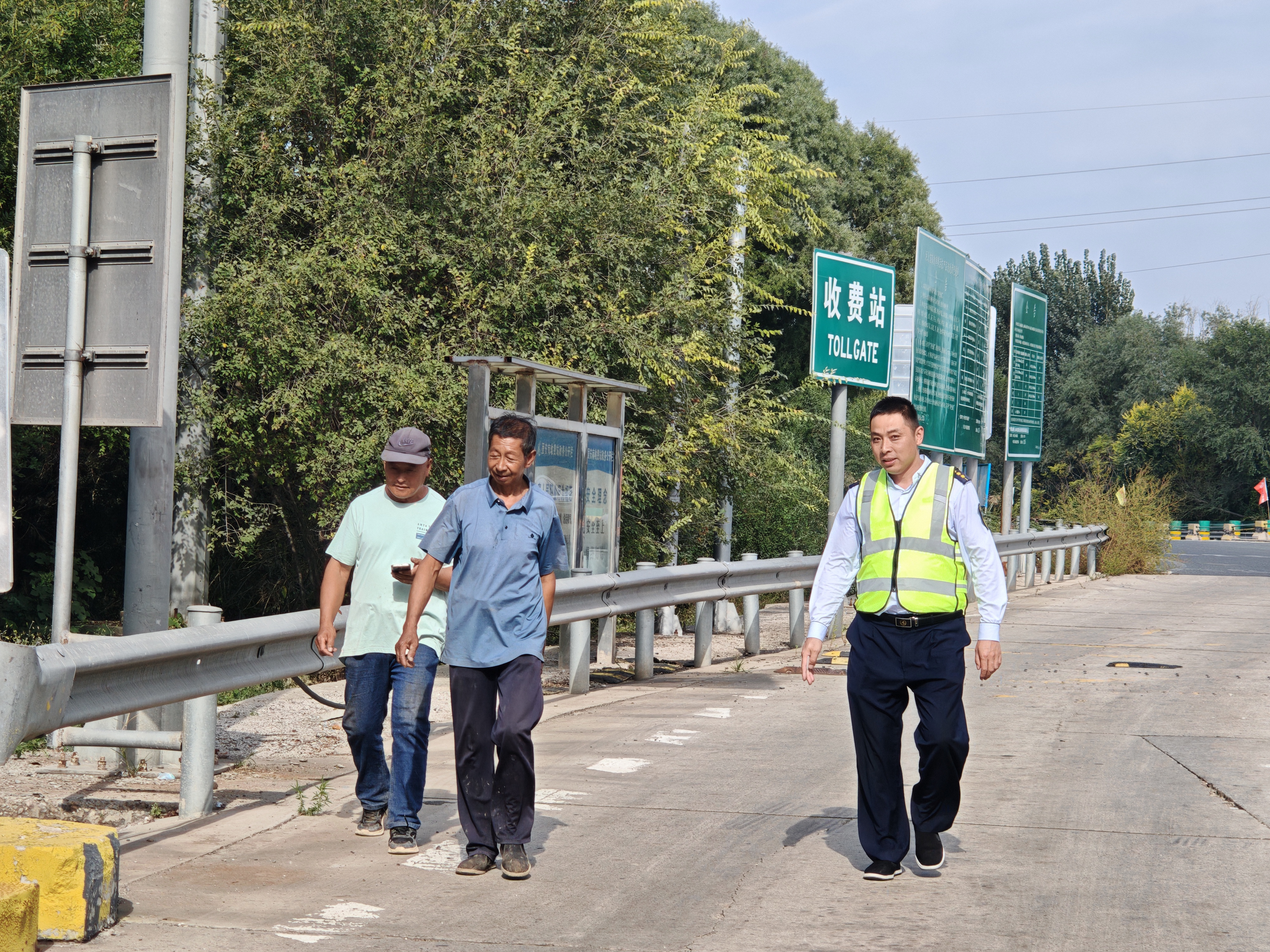 9月29日14:30,固安南收费站当班收费人员在收费工作中发现两名村民正沿着收费车道边缘逆行上高速,由于国庆节前车流量较大,车速快,两人的行为不仅将自身置于险境,也给过往车辆带来极大安全隐患。收费人员立即通过对讲机向备岗人员报告,备岗人员迅速赶到现场后,将两名村民引导至站区安全地带。经询问得知,二人是附近村庄的村民,想要步行进入高速路肩区域散步,并未意识到该行为的危险性。