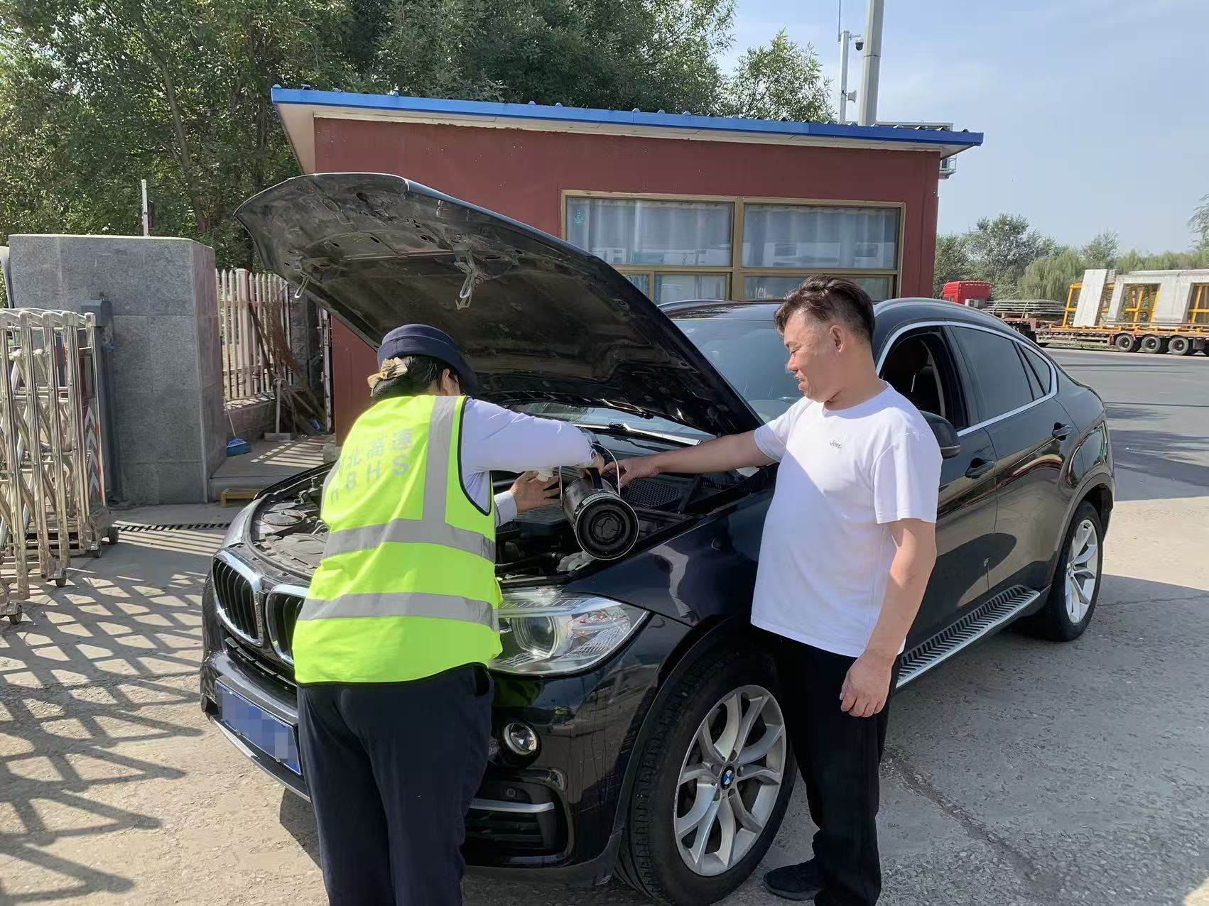 司机向班长说道:“车子突然报警,水温太高,我不敢再往前开了。”班长一边安抚司机情绪,一边协助其打开引擎盖,发现该车发动机过热“开锅”。为防止发动机进一步受损,当班班长立即从便民服务亭提来一壶冷水,协助司机为发动机降温。“要不是你们及时帮忙,我一个人在这人生地不熟的地方,真不知道该怎么办。”司机感激地说。“不用客气,这都是我们份内的事,在河北高速上遇到困难,我们都会尽力帮忙。”班长笑着回应。
