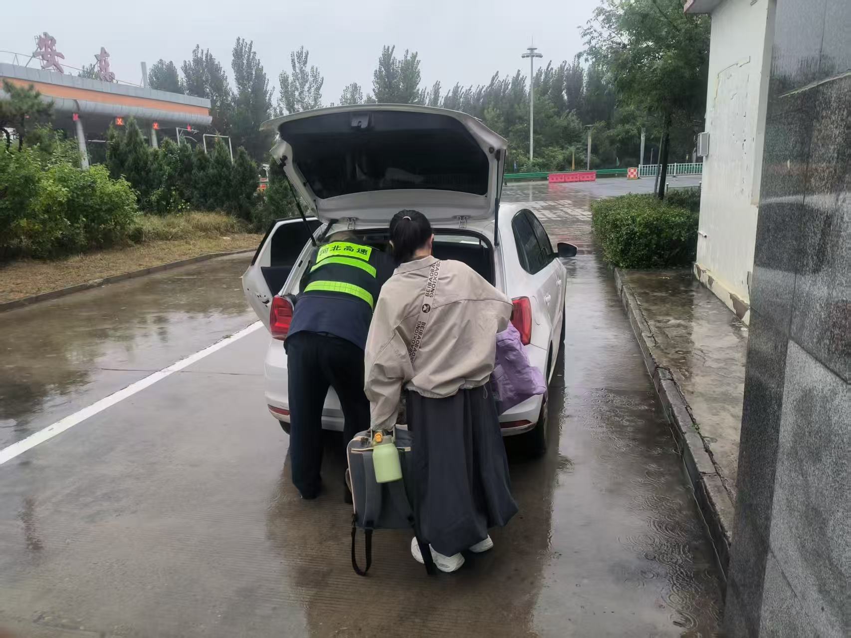通过询问了解到,女大学生是从张家口坐长途客车到高速口后,想打车到学校但是一直没有车。疏导员将她引导到便民亭休息,并协助她联系网约车。由于大雨的缘故很长时间过去了仍然没有司机接单。看着她焦急又无助的眼神,他对女大学生说:“姑娘你别着急,我马上下班了,然后送你去学校。”完成交班后疏导员驾驶私家车将大学生送到学校。女大学生不停的表示感谢。