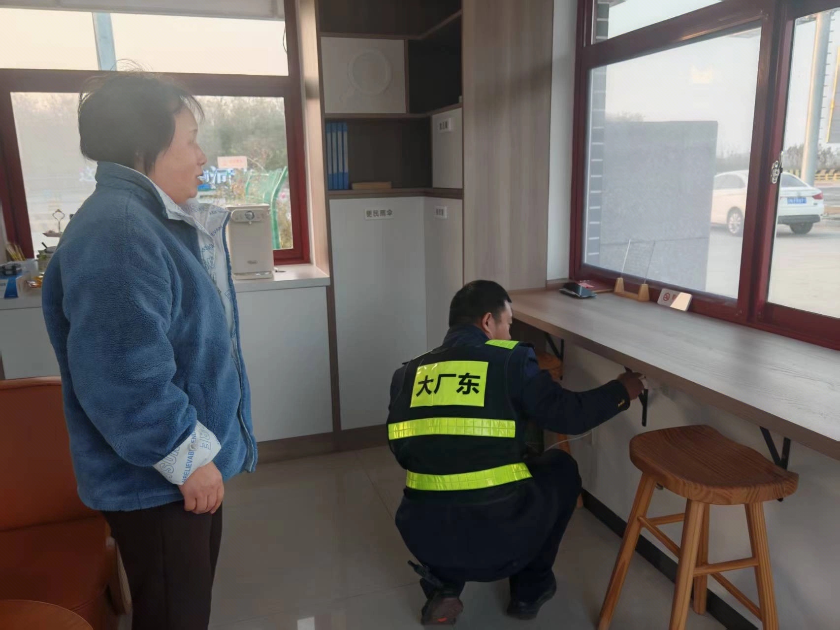 11月19日傍晚,一辆白色小轿车停在大厂东收费站门口,车上女士着急地向当班人员求助。