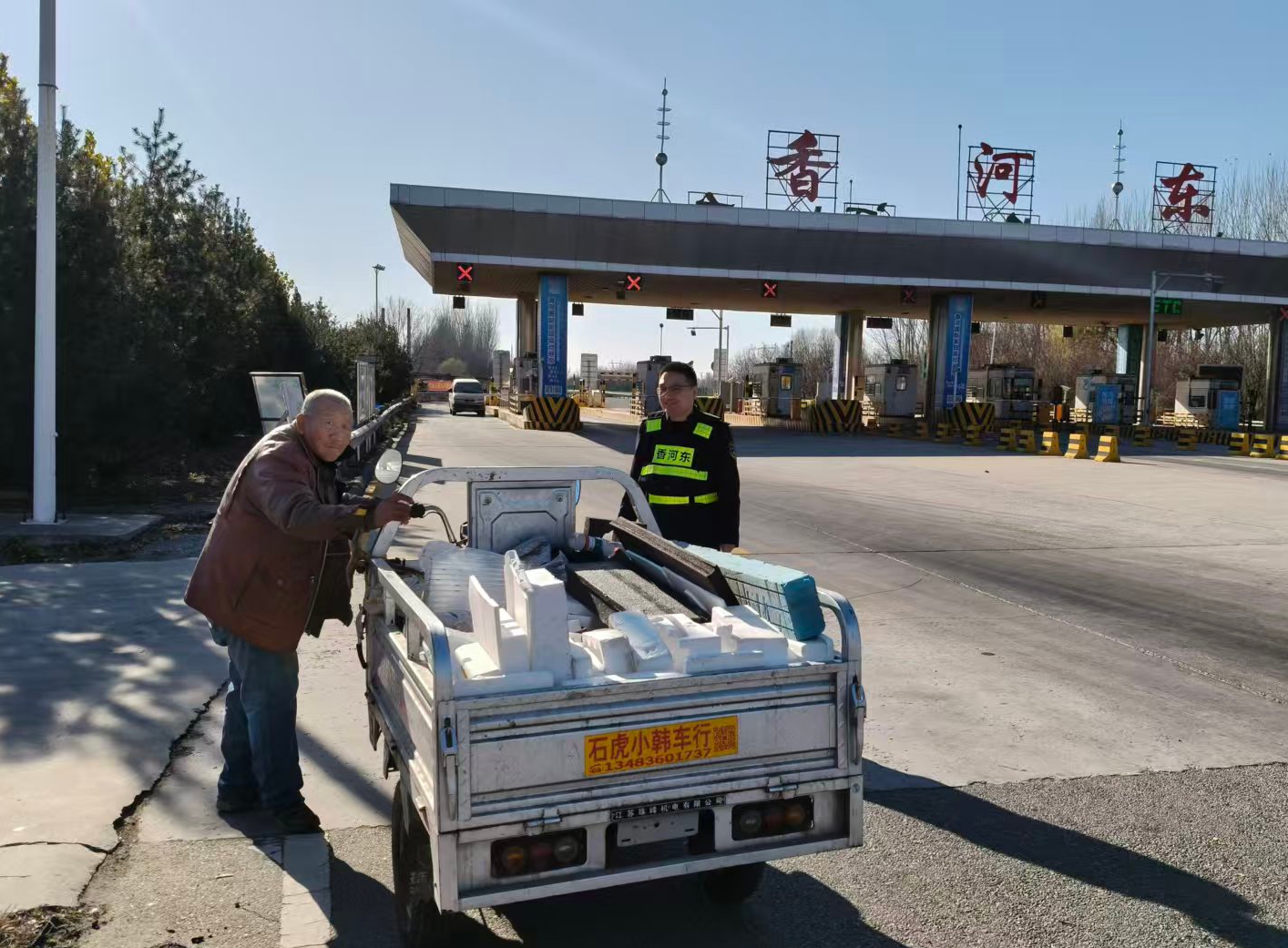 当日中午,一名老大爷驾驶电动三轮车行驶至香河东收费站入口处,准备驶入高速公路,执勤收费员见状立即上前劝阻。经耐心询问得知,老大爷年纪较大,出门办事时不慎迷路,误将高速入口当作普通道路,一心想着按原路线返程却辨不清方向。考虑到电动三轮车禁止驶入高速,且老大爷独自出行存在安全隐患,收费员先安抚其焦急情绪,详细告知高速通行规定,随后根据老大爷描述的大致住址,耐心指引最优返程路线,清晰说明沿途标志性建筑,确保老大爷能顺利找到回家的路。待老大爷明确路线、情绪平复后,收费员又反复叮嘱其骑行途中注意交通安全,缓慢行驶。老大爷对收费员的细心帮助连连致谢,随后按指引安全驶离。