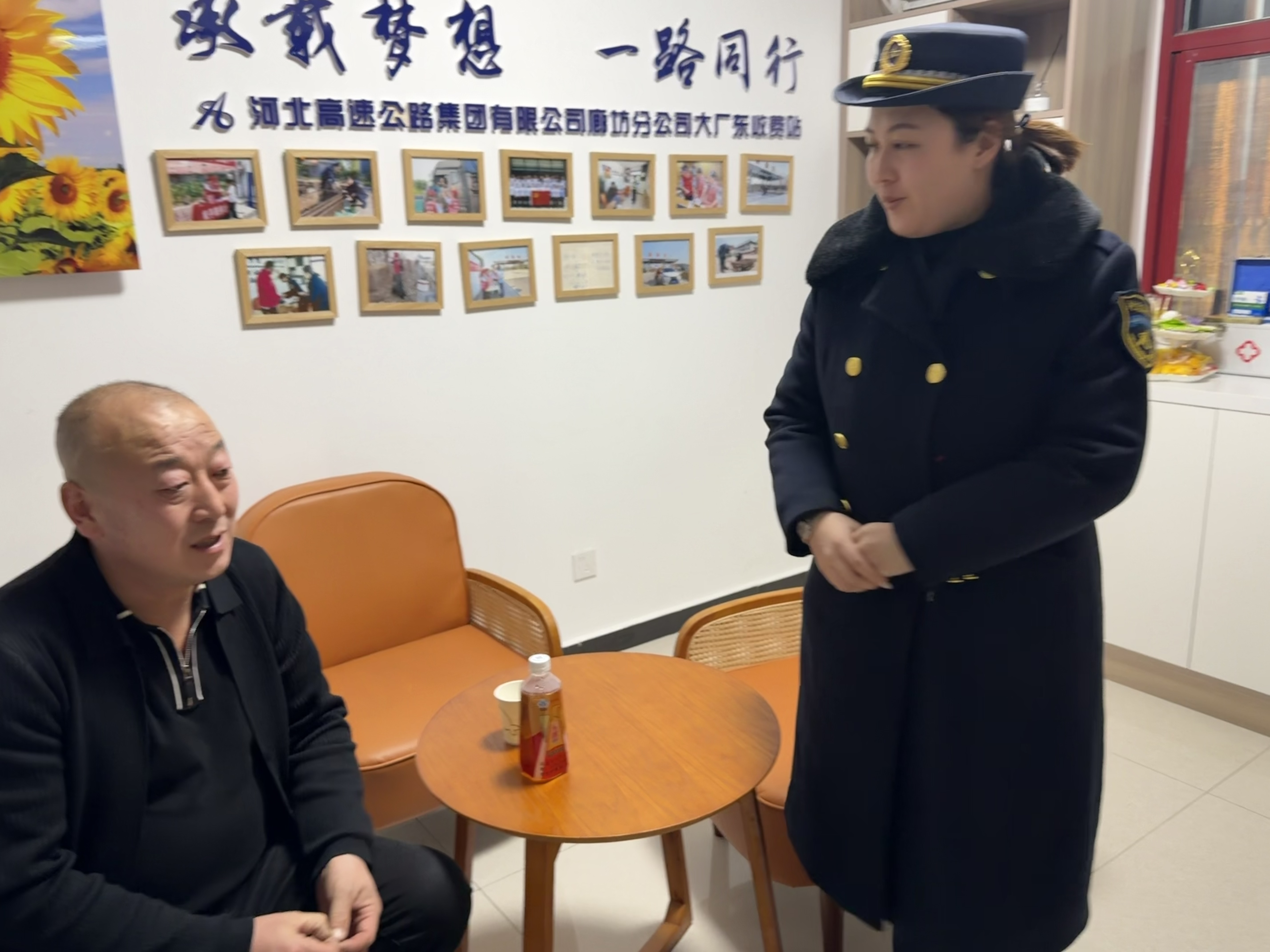 1月22日晚,一位驱车长途跋涉的驾驶员行至大厂东收费站时,因手机电量耗尽,无法联系家人,更难以导航规划后续行程,焦急不已。大厂东收费站工作人员见状主动上前,将司乘引导至党群服务中心,同时调整好室内空调温度,为其送上热水,让司乘能安心等待手机充电。