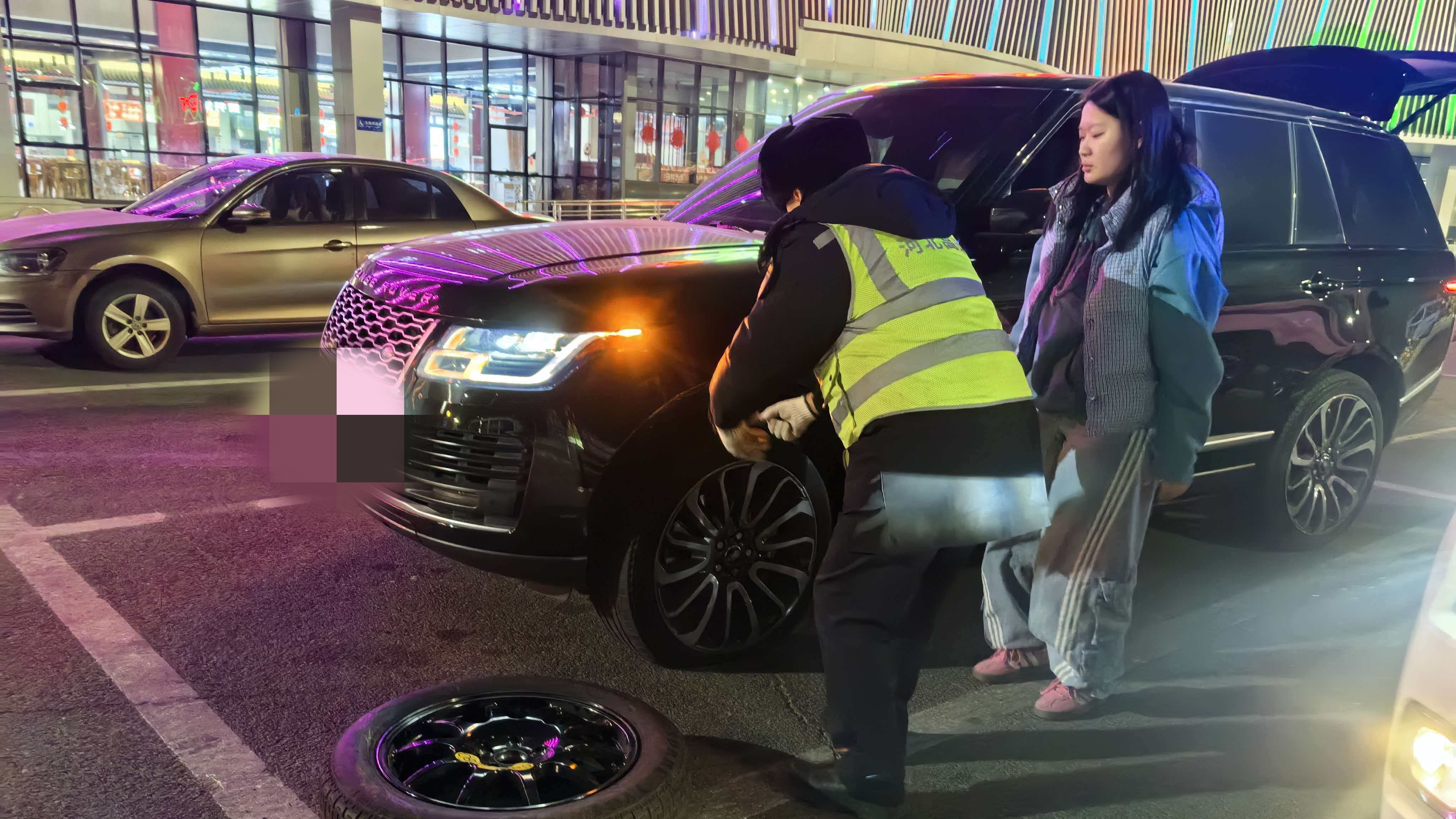 2月11日21时许,香河保通保畅应急大队队员夜间巡逻至香河服务区附近,发现一辆黑色SUV打着双闪停靠在路边,司机正焦急地站在车旁,手足无措。队员立即上前询问,得知车辆因轮胎亏气无法正常行驶,而司机又未能找到备胎,一时陷入困境。