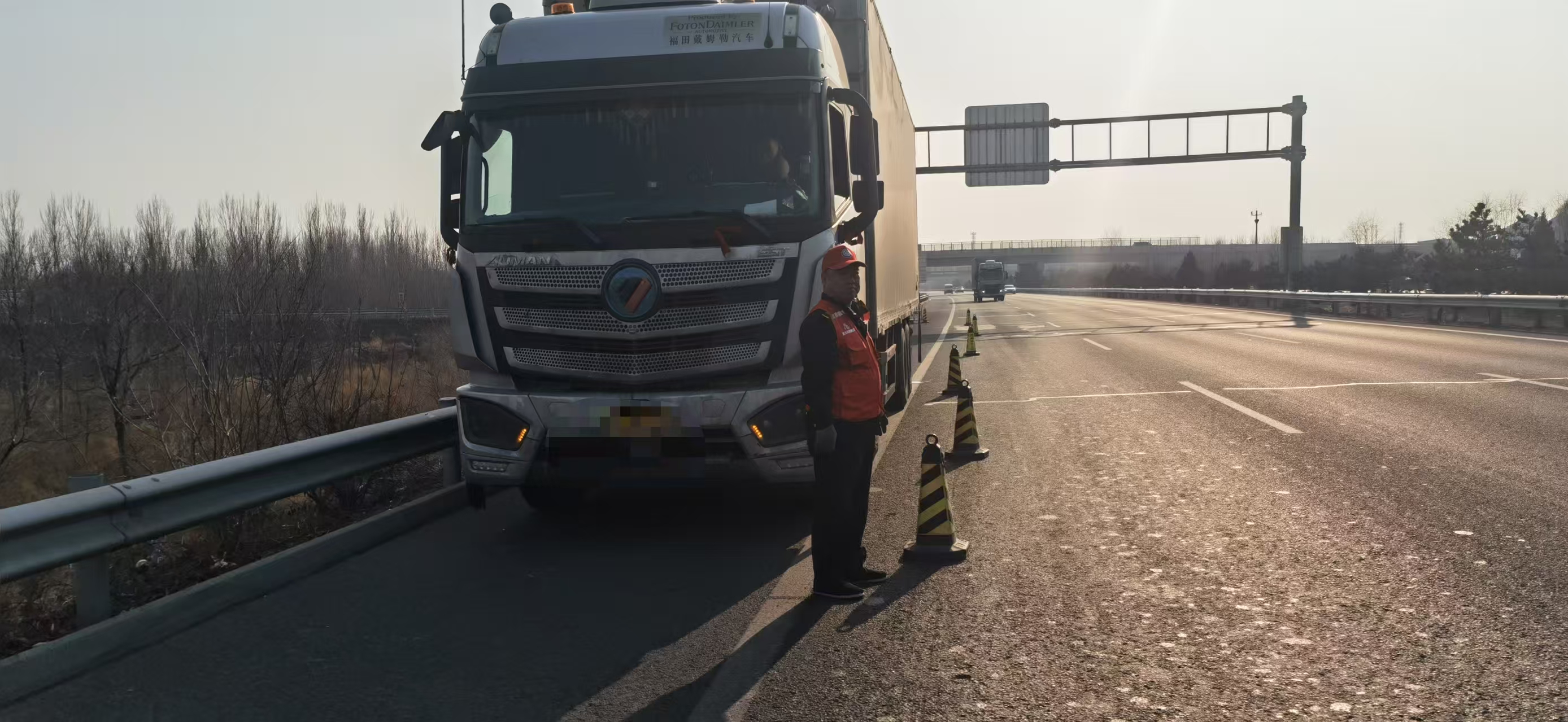 3月11日15时30分,广阳保通保畅应急大队队员刘伟科、吕清海巡查至首都环线高速密云方向K225+300公里处时,发现一辆货车停靠在应急车道,一名男子手提油桶,神色焦急地朝他们跑来。