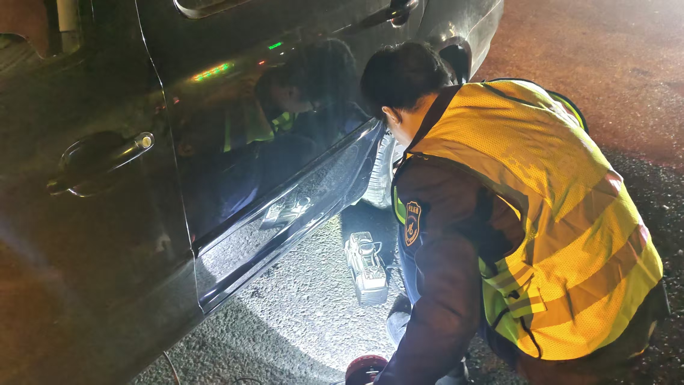 3月22日23时,一辆黑色小客车驶出廊坊分公司蒋福山收费站收费车道后,突然在收费外广场路边停下并开启双闪警示灯。收费班长见状,立即主动上前关切询问司机是否需要帮助。原来司机在行驶途中发现左后轮胎压持续降低,便赶紧就近驶离高速,待驶出收费车道时,车胎气压已无法支撑车辆继续行驶。