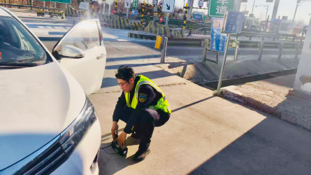 1月29日21时16分,一辆小型客车缴费完毕驶出收费车道后,缓缓停靠在收费广场路边。司机一脸焦急,下车查看发现后轮轮胎亏气严重,无法继续行驶。班长见状,快步走到车旁,关切地询问司机情况。[详细]
