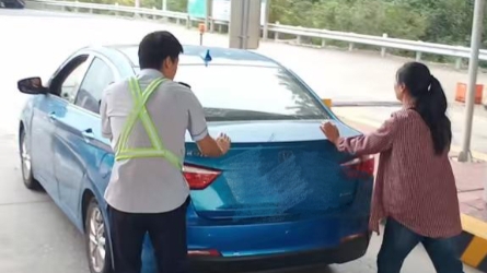 9月17日上午11时,蒋福山收费站出口车道外,一辆小客车停靠在收费广场安全区域,当班班长发现异常后立即上前排查。[详细]