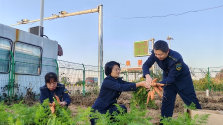 近日,大厂东收费站的职工小菜园里迎来了一片热闹的丰收景象,充满了欢声笑语。在岗人员拿着工具共同收获他们亲手种植养成的胡萝卜。 [详细]