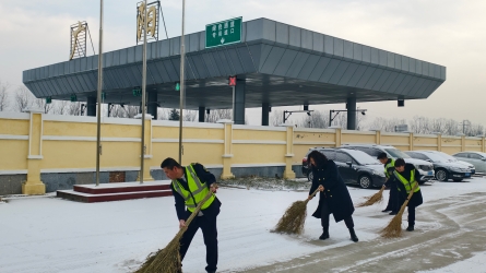 昨夜大雪纷飞,为确保站区安全畅通,今日清晨,齐心庄收费站领导率先垂范,带领前勤一线收费员、各班组班长、副班长以及全体备岗人员,投入到紧张的扫雪除冰工作中。[详细]